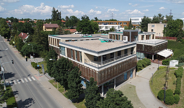 Architektonická forma domu respektuje tradiční středočeskou architekturu. Celý objekt má evokovat stodolu s užitím materiálu jako je omítka na fasádě, kámen na zpevněných površích a předsazené dřevěné plaňky před pavlačemi a terasami. Dvoupodlažní budova se sedlovou střechou se drží formy místních hospodářských stodol.