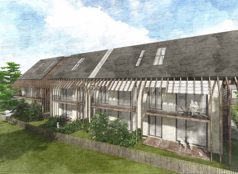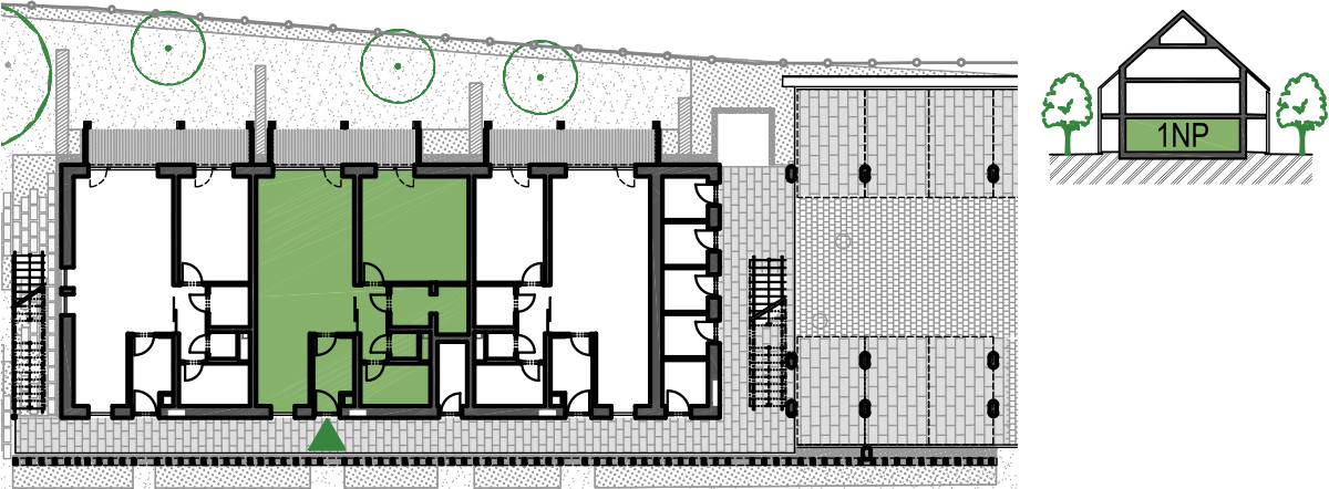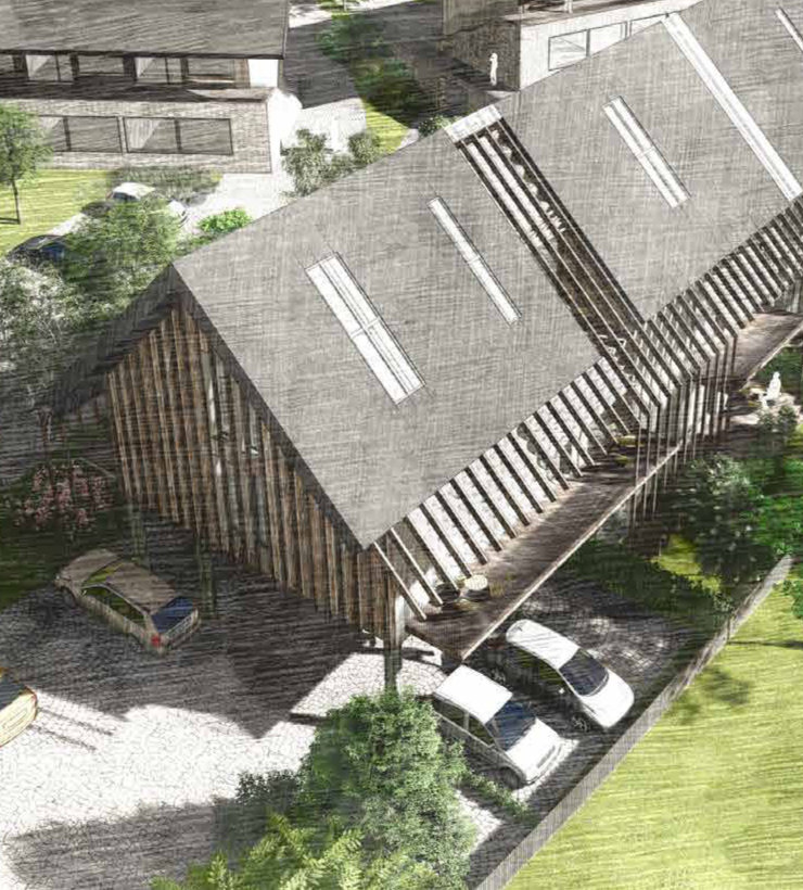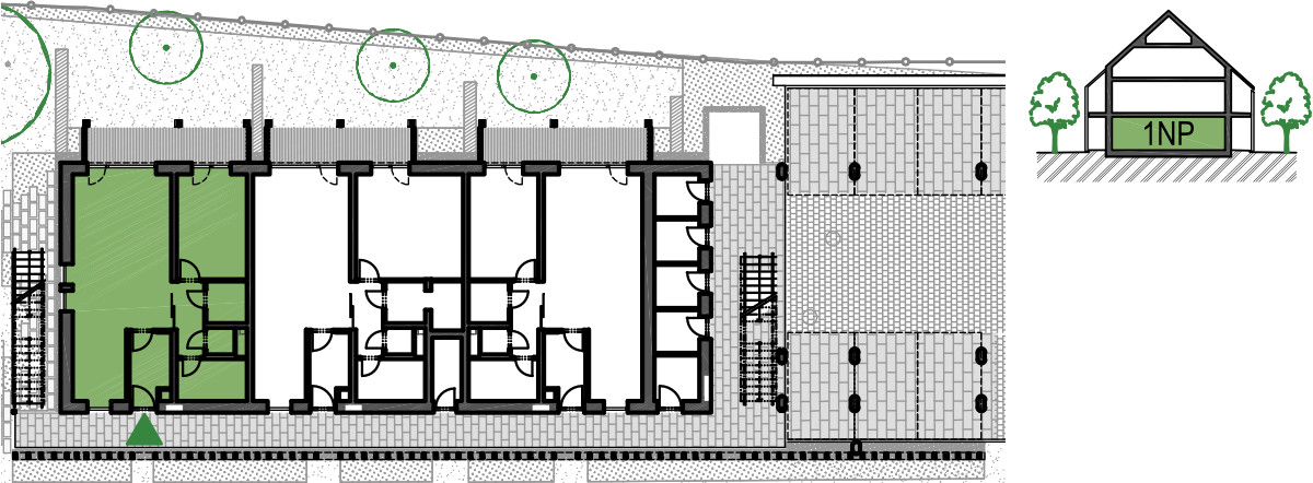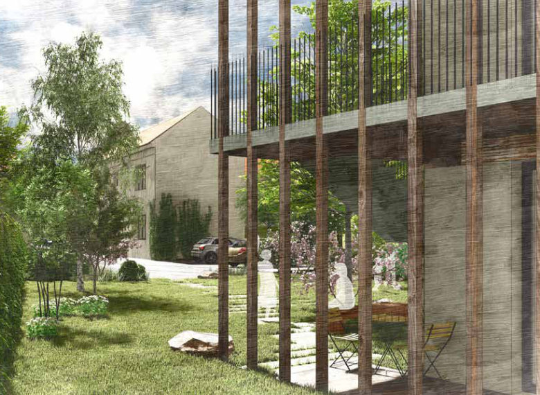 Bytový dům, jehož autorem je renomovaný ateliér Jakub Cigler Architekti a.s., je umístěn u historické návsi v centru obce, v těsné blízkosti zámku. Pro tuto lokalitu je specifická rozptýlená zástavba menších domů s přilehlými hospodářskými staveními.