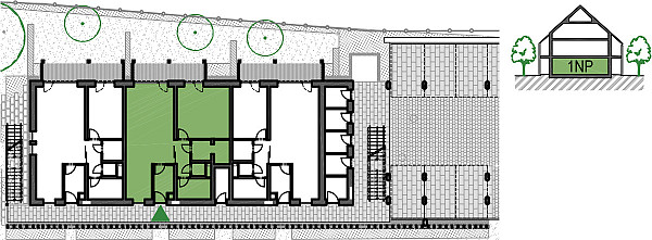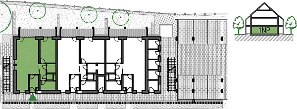 Nově zrekonstruovaná historická budova s prostory k pronájmu se nalézá na historické návsi v centru obce naproti zámku a obecnímu úřadu. V objektu se nacházejí kancelářské prostory o celkové rozloze 210 m2. V přízemí budovy je klientům k dispozici moderně vybavená sdílená místnost, vybavená kuchyňským koutem a sociálním zázemím.