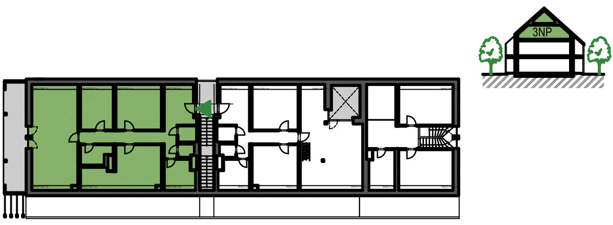 Nabízíme k pronájmu krásný byt v novém bytovém domu v Dolních Břežanech. Dům o devíti bytových jednotkách, navržený ateliérem Jakuba Ciglera, se nachází v centrální části obce. Byt je vybaven kuchyňskou linkou s indukční varnou deskou, myčkou, troubou a digestoří, má vlastní plynový kotel, vstupní předsíně jsou vybaveny vestavěnými úložnými prostory. V pokojích jsou položeny vinylové podlahy, v koupelně a předsíni dlažba. Okna jsou vybavena stínícími roletami, terasy zastiňují baldachýny. K bytu náleží komora, přístupná z chodby a předzahrádka. Je možné pronajmout si venkovní parkovací stání. Byt je klimatizován.